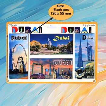 This set of 3 coaster fridge magnets features iconic Dubai landmarks, blending practicality and style. Perfect for protecting your surfaces from drink stains while adding a touch of Dubai’s charm to your home or office. A great souvenir or gift for anyone who loves Dubai!