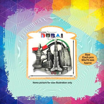 Shop the Dubai UAE Metal Magnet (1 Piece) with silver finish and “Dubai” lettering. Perfect souvenir for those who love Dubai’s iconic landmarks. Ideal gift or home decor piece. Order now!
