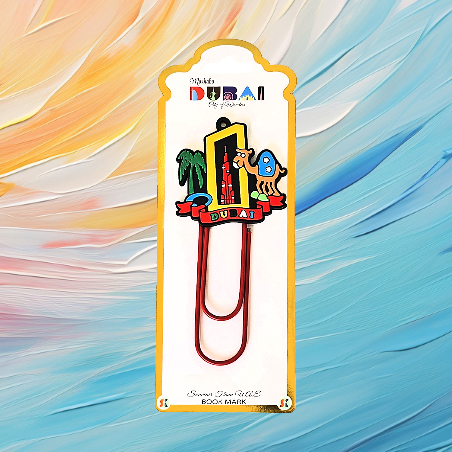 Discover the Dubai UAE Bookmark with camel and Burj Khalifa designs. A unique red-themed souvenir inspired by Dubai’s beauty, perfect for gifting or personal use.