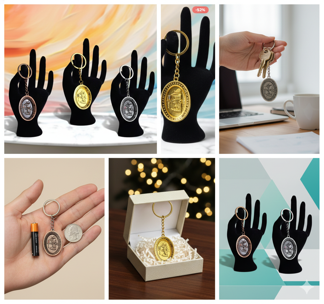 Celebrate the grandeur of Dubai’s world-renowned skyline with this elegant 3-piece Oval Metal Keychain Set, featuring finely crafted silhouettes of the city’s iconic architectural landmarks. Designed with a sleek metallic finish, this set is a perfect souvenir or gift that reflects the modern spirit and luxury of Dubai.