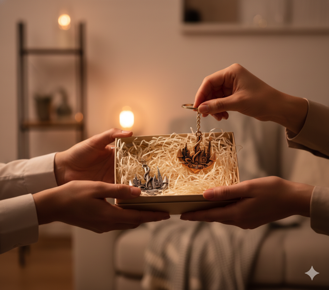 Whether as a keepsake from a memorable trip or a stylish accessory, this keychain set captures the fusion of tradition and futuristic ambition that defines Dubai.