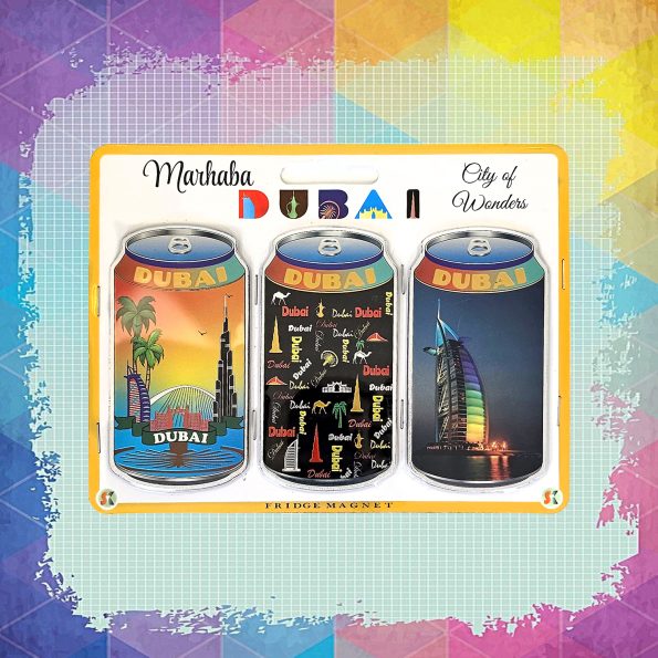 Shop Dubai UAE Magnet 3pcs Can Shape featuring colorful designs of Burj Khalifa & Burj Al Arab. A perfect souvenir or gift to treasure Dubai’s charm.