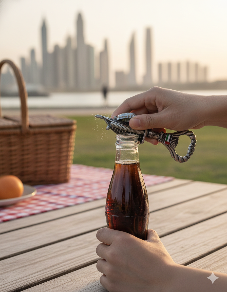 Bring the iconic charm of Dubai into your home with this elegant metal bottle opener fridge magnet. Featuring a stunning Burj Al Arab design in silver and black tones, this multifunctional souvenir is both stylish and practical – a perfect keepsake or gift for loved ones.