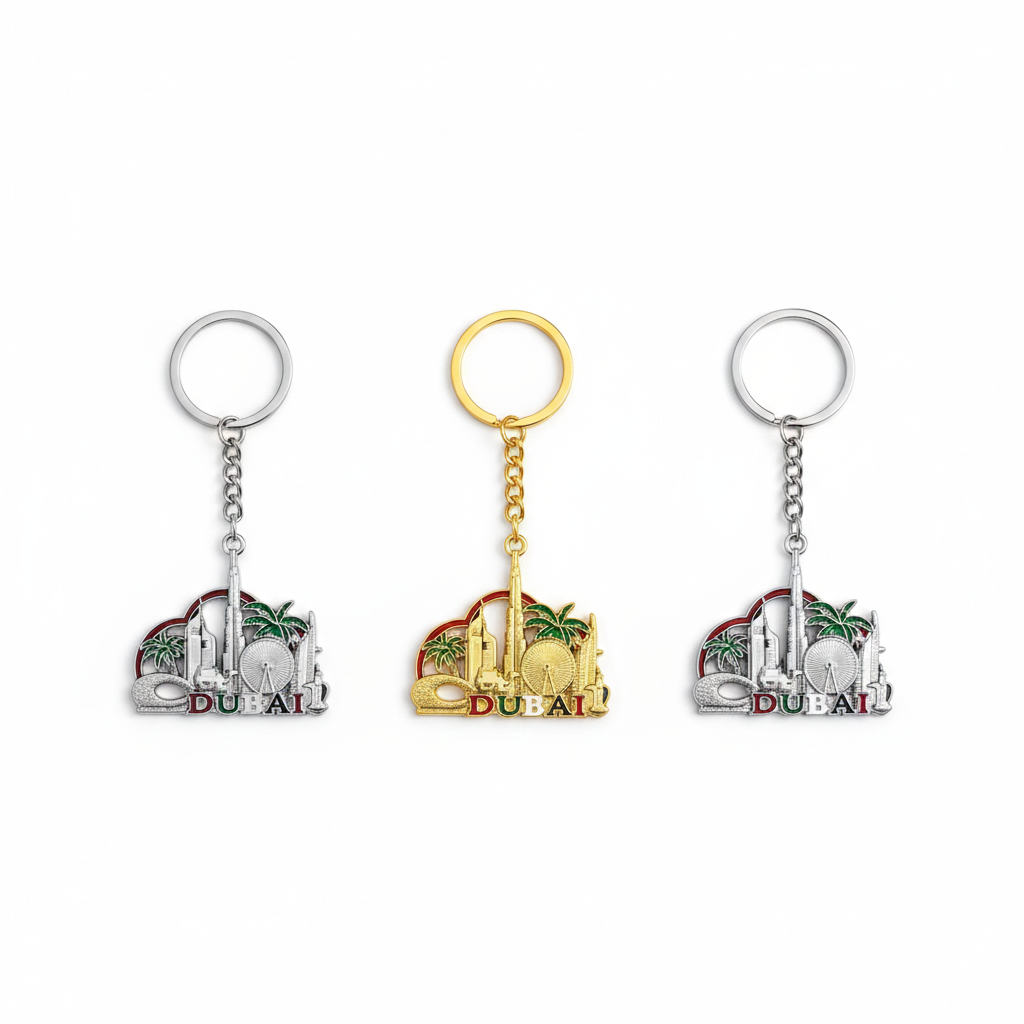 Metal Keychain Dubai skyline Multicolor 3pcs