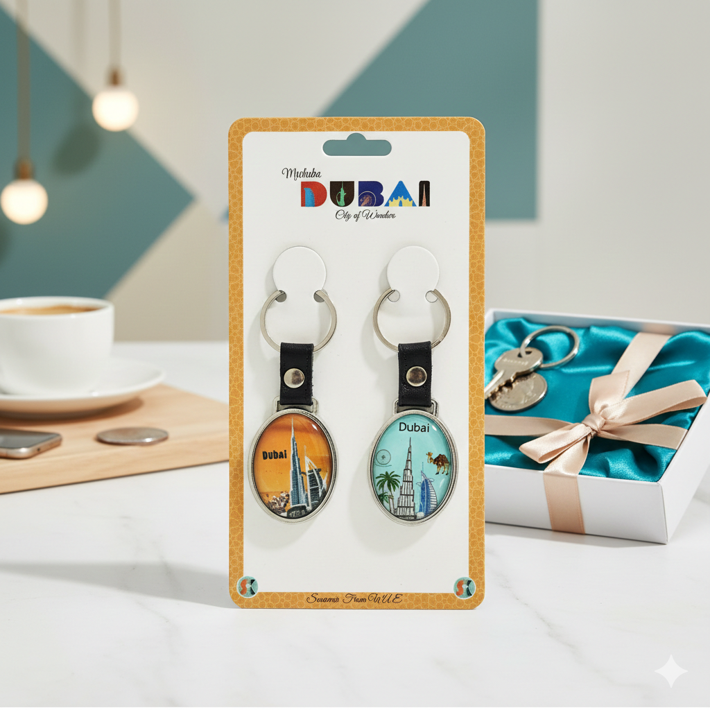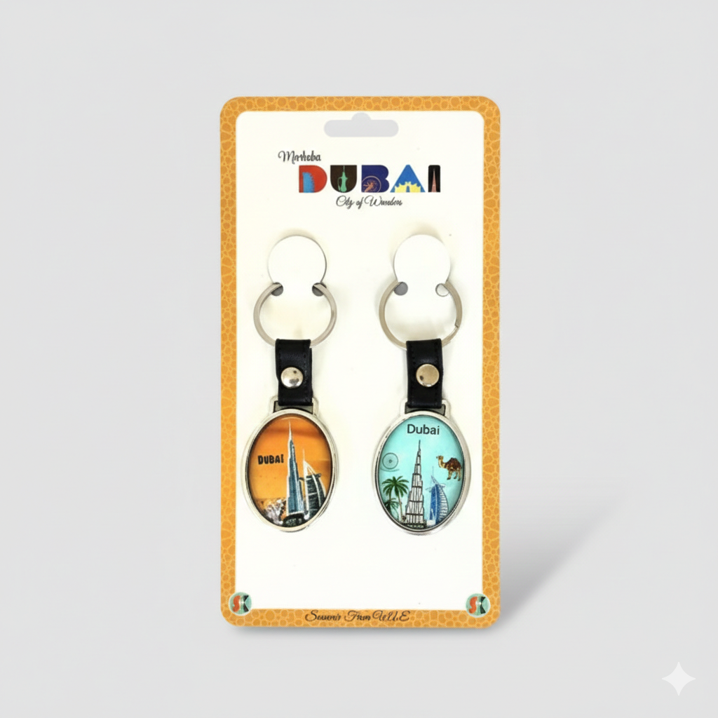 Carry a piece of Dubai with you! This premium-quality metal keychain features a simple yet elegant dual design in vibrant colors. Perfect as a gift or personal keepsake, this lightweight and durable keychain captures the essence of Dubai in style.