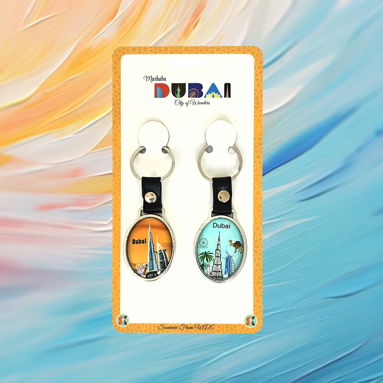 Shop Dubai UAE Metal Keychains at Souvenir! Simple, unique, colorful dual keychains crafted in durable metal. Perfect for gifting or as a keepsake. Order now!