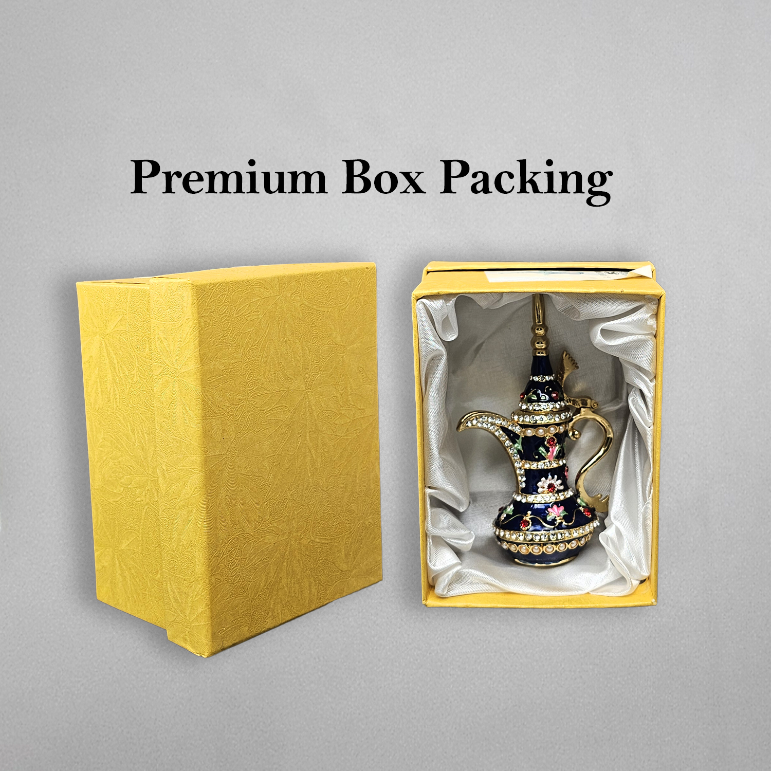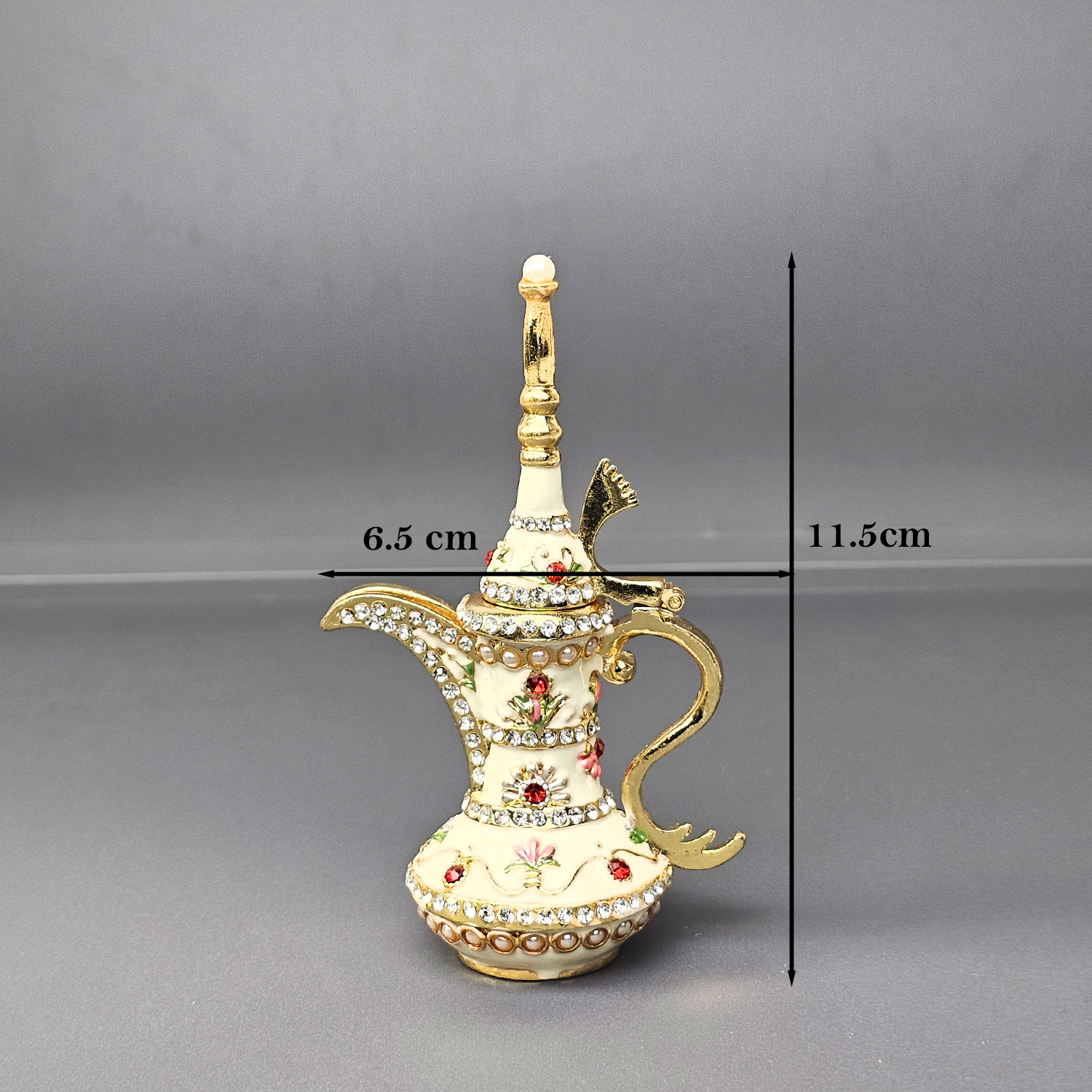 A beautifully crafted Dubai dallah adorned with vibrant enamel paint and sparkling mix stones, perfect as a unique decorative piece or souvenir.