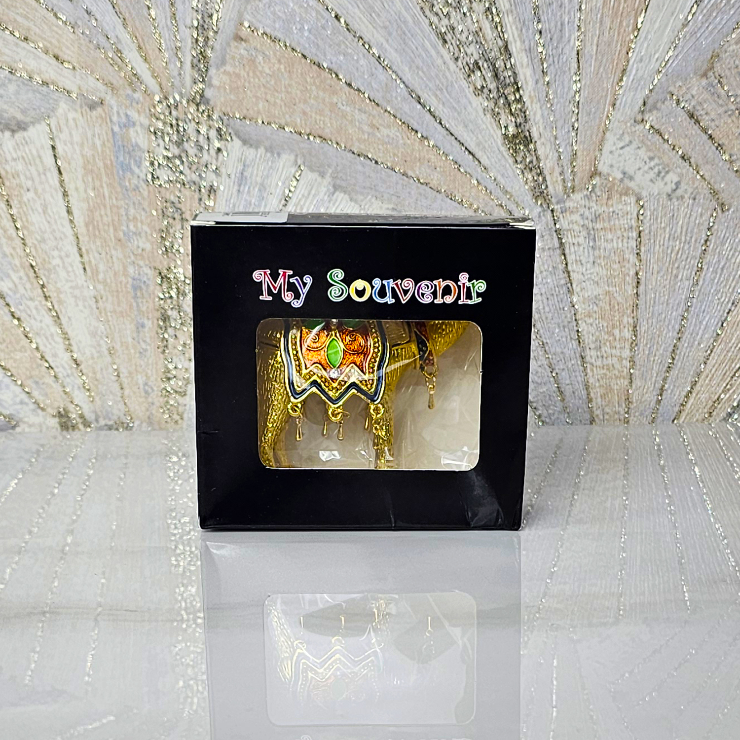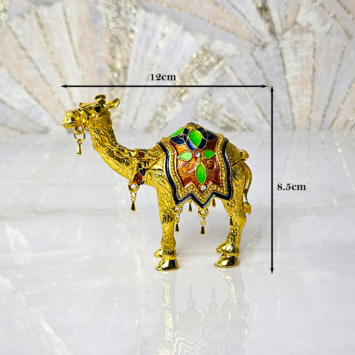 Celebrate the charm of the desert with this Hand-Painted Metal Camel with Baby Camel Souvenir. Crafted from durable metal and decorated with intricate multicolor artwork, this piece captures the warmth of Arabian culture. The sitting camel design with its calf makes it a unique and meaningful collectible, symbolizing heritage, endurance, and family bond.