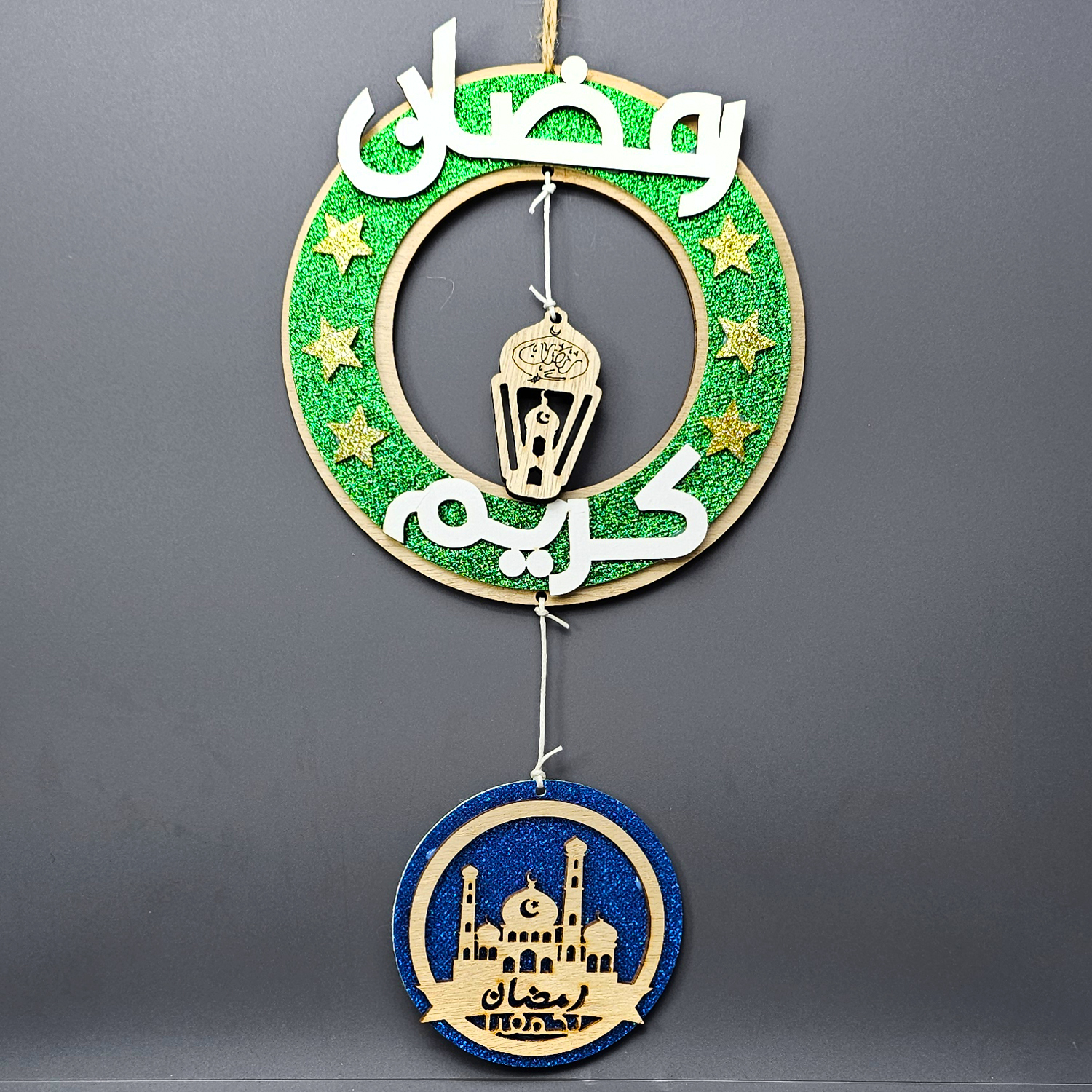 Elegant MDF wooden hanging decoration with Ramadan-inspired design, perfect for home, office, or gifting during the holy month.