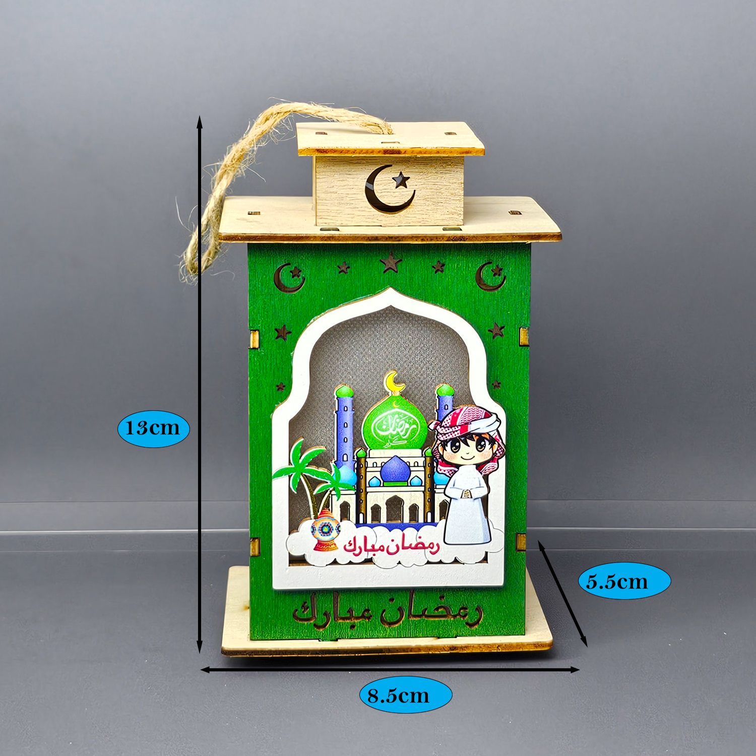 Illuminate your home with the charm of Ramadan using this MDF Wooden Lantern with LED Light. Designed with intricate cutwork patterns, this lantern radiates a soft, warm glow that enhances the festive atmosphere during the holy month. Lightweight yet durable, it can be placed on tables, shelves, or hung as a centerpiece to create a serene and welcoming setting for family and guests.