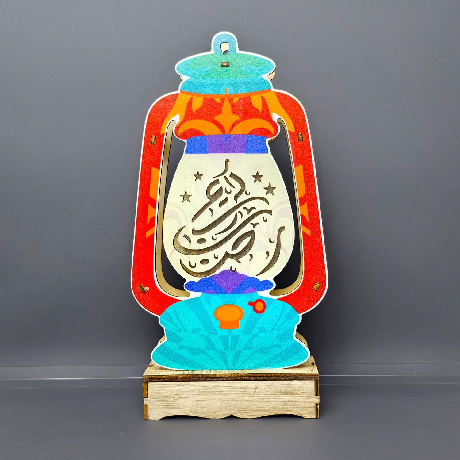 Enhance your Ramadan celebrations with this beautifully designed MDF Wooden Traditional Lantern. Featuring intricate cutwork and a soft LED glow, it adds warmth, spirituality, and elegance to any space. Crafted from durable MDF wood, this lantern is lightweight, reusable, and safe to use indoors. Whether placed on a table, shelf, or hung as a decorative piece, it creates a welcoming atmosphere for family gatherings and festive occasions.