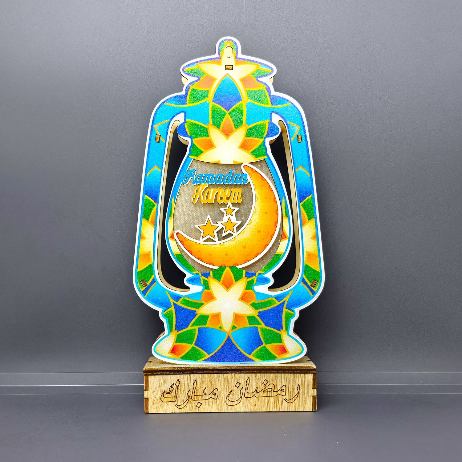 Traditional MDF wooden Ramadan lantern with warm LED light — a perfect blend of classic design and festive charm.